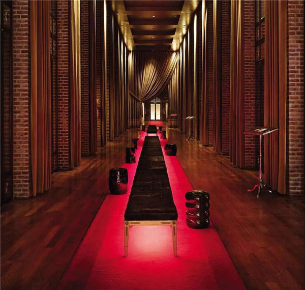 布宜諾斯艾利斯法恩納酒店是由倉庫改建的。酒店處處散發(fā)出性感的精致氣息,整座酒店沉浸在黑暗的燈光和鮮紅的血色當(dāng)中,既神秘又性感。主大堂設(shè)有一個(gè)長長的走廊,高高的天花板和長長的窗簾,給人一種徜徉在“愛麗絲夢游仙境”的感覺。