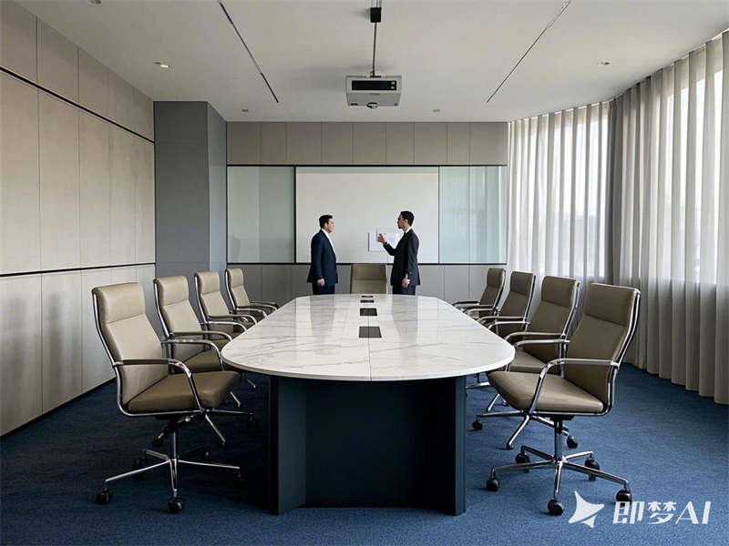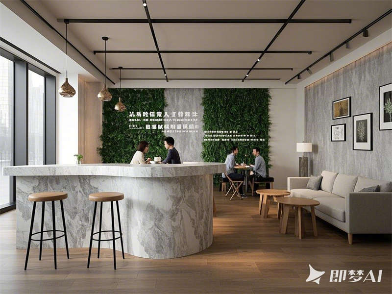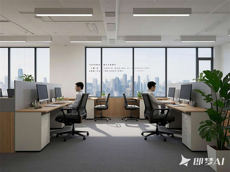 設計上以低飽和度配色(淺灰、米白、原木色)為主,搭配企業品牌色點綴,材質選用大理石、金屬和啞光飾面,營造高級質感。自然光線與柔和燈光結合,綠植和藝術裝飾增添生機與美感。整體空間動線流暢,功能分區明確,既滿足高效辦公需求,又兼顧員工福祉,彰顯現代企業的創新與人文關懷。