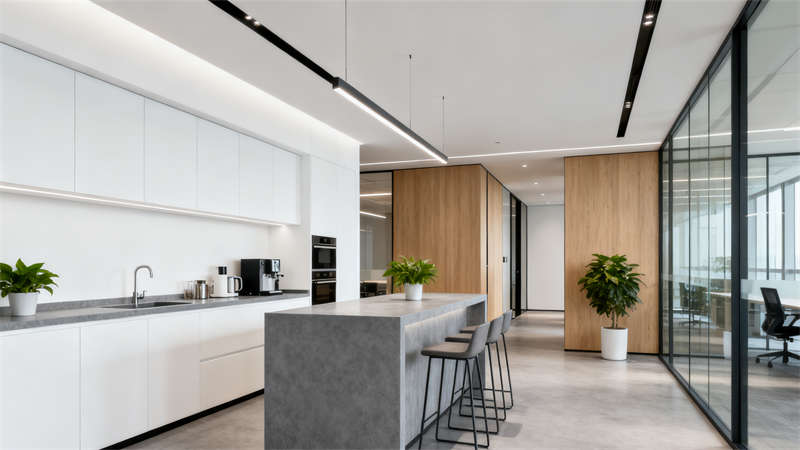 獨立辦公區注重私密性與實用性,通過合理的隔斷設計劃分空間,同時配備完善的辦公設施,滿足高效辦公需求。休閑區則營造出輕松愜意的氛圍,搭配柔軟的軟裝與綠植裝飾,為員工提供放松休憩的場所。會議室設計兼顧實用性與辨識度,運用簡潔的裝飾元素與專業的設備配置,打造適合商務洽談與團隊研討的空間。整體裝修設計從空間利用、視覺效果到使用體驗,全方位提升辦公室的品質與格調,為使用者創造舒適、高效的辦公環境。?