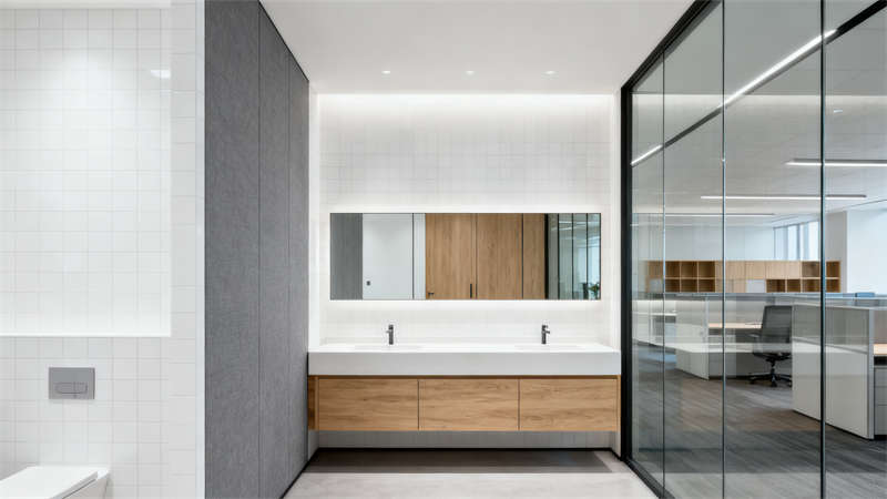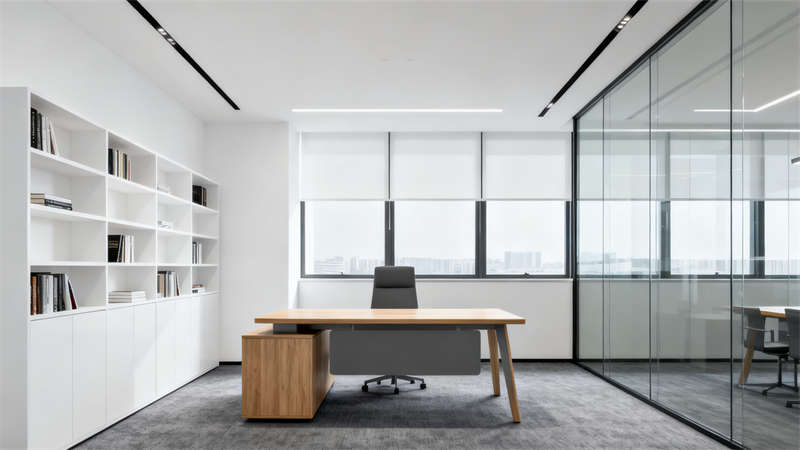 本設計圍繞現代簡約風格展開,整體色調以中性色為基底,搭配低飽和度的輔助色彩,營造出沉穩且富有活力的辦公氛圍,與合肥這座城市兼具文化底蘊與現代氣息的特質相契合。?