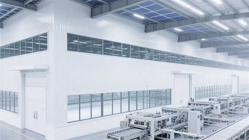 各區域在材質選擇上注重實用性與質感,搭配統一的設計語言,既展現出新能源產業的科技感,又讓整個廠房內部顯得和諧統一,滿足生產、倉儲與研發等多方面的功能需求。