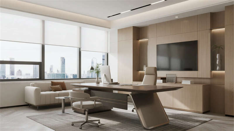 本設計以現代簡約風格為核心,強調功能與美學的和諧統一,為辦公環境注入靈動活力。整體空間采用淺色調基座,搭配玻璃幕墻和金屬元素,營造通透輕盈的視覺體驗。辦公樓外觀以幾何線條勾勒城市天際線,大廳作為樞紐,以簡約接待臺和綠植迎接訪客,傳遞專業與親和力。電梯間延續寧靜氛圍,鏡面設計拓展空間感。開放辦公區注重協作,靈活布局促進效率,自然光透過落地窗灑滿區域,綠植分隔既美觀又環保。經理辦公室和總裁辦公室以私密性與開放性平衡,簡約家具與城市景觀結合,提升工作舒適度。會議室功能性強,玻璃墻增強通透感,便于創意碰撞。樓頂花園作為休憩綠洲,綠色屋頂與簡約座椅提供放松空間,呼應環保理念。設計融入蚌埠地域特色,汲取城市活力與自然元素,打造高效、舒適且可持續的辦公環境,體現現代工作方式的優雅蛻變。