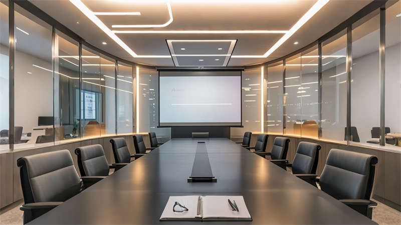 2)智能會議系統集成無線投影、聲學優化和情景照明模式;