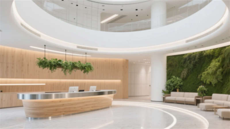 生態(tài)科技體系覆蓋全場(chǎng)景:經(jīng)理辦公室苔蘚墻集成空氣監(jiān)測(cè)系統(tǒng),總裁室霧化玻璃聯(lián)動(dòng)光伏發(fā)電,小會(huì)議室綠植墻搭載微滴灌節(jié)水裝置。材質(zhì)選用安徽本土元素升級(jí)再造,大廳水磨石摻入大別山礦石粉,定制地毯紋樣提取徽派窗欞數(shù)字化變體。