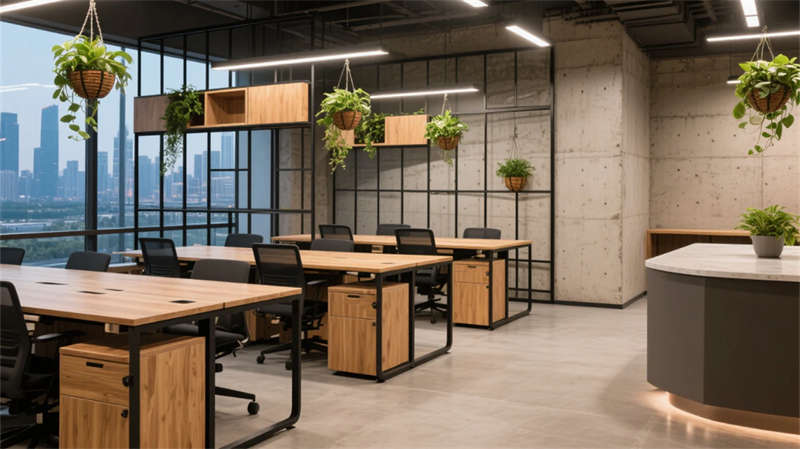 本項目以“自然滲透”與“靈活共生”為核心,將輕工業風的理性框架與生態綠意巧妙融合。空間打破傳統辦公割裂感,通過綠植墻體、透光天井與流動線條,在合肥城市肌理中營造出呼吸感十足的職場綠洲。