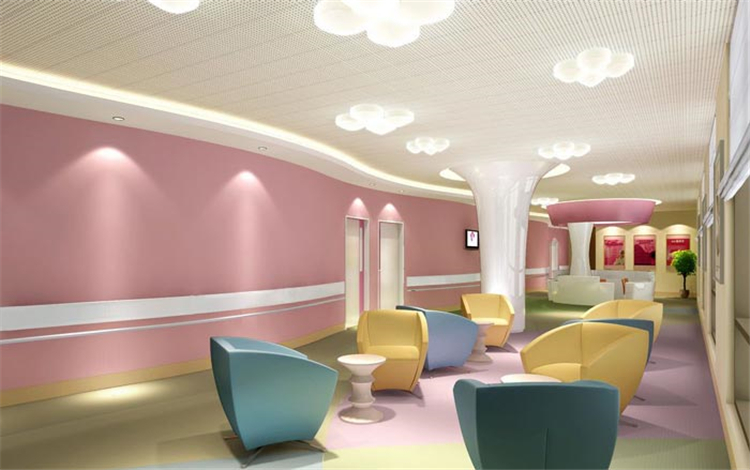 設計理念: 婦女兒童醫院裝修設計之初,設計師就不斷吸收建筑設計中“母親懷抱小孩”的理念。在經過和業主之間的交流,深入了解醫院的院系文化、歷史背景、管理理念和價值觀取向,結合婦女兒童這兩種特定人群進行設計思考。醫院以產科、婦科、兒科為主要服務對像,設有女性溫馨門診,婦科腔鏡中心、兒童“卡通”門診。病區設有中高檔床位90張,擁有VIP尊貴病房,設計師為了讓病房家庭化,對病房進行了重點設計,定位于溫馨的病房。在病房區域的大廳,設計師引入了自然的光照、加入了休閑的風格,定位于陽光休閑大廳。音樂候診咖啡吧,全方位滿足客患個性化需求,營造生態化、人文化就醫環境。
