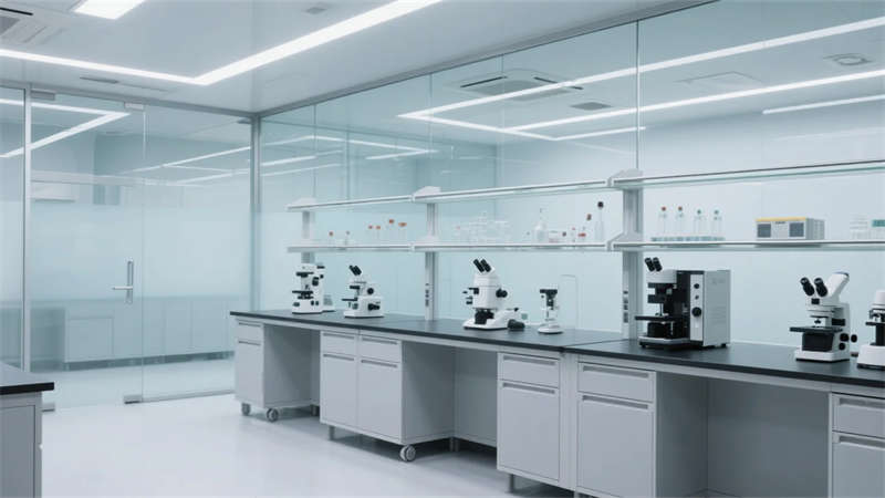 本項目以現代簡約美學重構半導體產業空間,將科技功能與人文環境無縫銜接。建筑外立面采用玻璃與金屬的碰撞,幾何切割線條傳遞工業力量感,同時通過灰白主色與局部科技藍的跳色,營造冷靜理性的視覺基調。內部空間嚴格遵循潔凈生產邏輯,千級無塵車間以純白環境保障精密工藝,研發實驗室則通過透明隔斷與智能設備凸顯技術前沿性。
