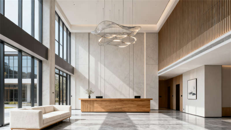 進入室內(nèi),大堂區(qū)域?qū)挸髁粒瑴\灰與米白的主色調(diào)營造出干凈清爽的氛圍,搭配原木色元素增添溫馨感,合理的空間布局讓動線清晰流暢,接待區(qū)與休息區(qū)劃分明確,既滿足功能需求,又提升了整體的格調(diào)。?