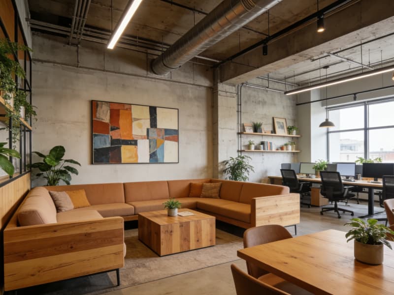 辦公區延續工業風格,辦公桌選用金屬框架搭配木質桌面,文件柜簡約實用。通過玻璃隔斷劃分不同的辦公區域,既保證獨立空間,又不影響整體通透感。