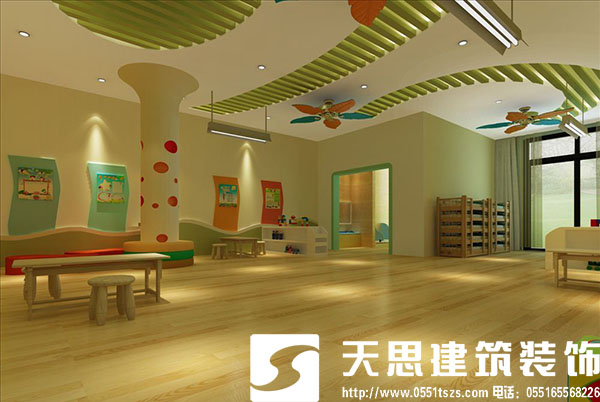 好的幼兒園裝修設(shè)計(jì)必須充分體會(huì)到孩子的需要,讓孩子們健康快樂的學(xué)習(xí)和成長(zhǎng),才是幼兒園設(shè)計(jì)成功的關(guān)鍵。要使幼兒在適合他們健康成長(zhǎng)的環(huán)境中生活。安全、衛(wèi)生是重要的條件,幼兒園環(huán)境創(chuàng)設(shè)必須服從于衛(wèi)生和安全的要求,以保證幼兒的安全成長(zhǎng)。合肥裝飾公司天思建筑裝飾公司您身邊的裝修專家,裝修詳情盡情咨詢:http://m.monolithvip.com/