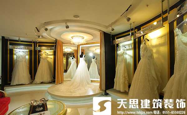 燈光要和色彩的完美的配合,要烘托出一種溫馨浪漫的氛圍。在裝修中大廳燈光的運(yùn)用首先考慮色溫,一般在2700K的色溫為宜。但局部需要突出產(chǎn)品的還需要用冷光源,例如直射婚紗的光源要用冷光,這樣能感受到婚紗的清潔、明亮、白、艷。
