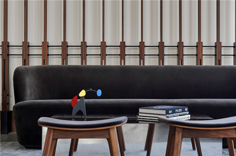 餐廳位于大堂旁邊,由木條幕墻隔開,而不是墻壁,目的是鼓勵人們在兩個空間之間自由移動。“當你走進大堂時,你會注意到餐廳空間和大堂區域之間的無縫,我們希望人們全天都能有效地利用這個空間,這樣你就不會覺得自己被封閉在一個特定的區域里。”