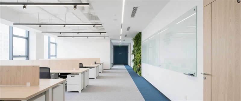 • 開放式辦公區(qū):北歐風(fēng)工位搭配綠植墻,裸露天花軌道射燈兼顧實用與工業(yè)美感;