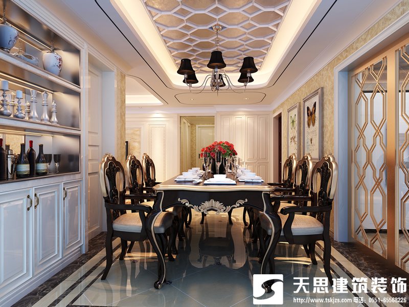 簡介:本案中采用了簡歐的設計手法。簡歐風格從簡單到繁雜、從整體到局部,精雕細琢,鑲花刻金都給人一絲不茍的印象。餐廳花格吊頂增強了主人家中的層次感,讓整體空間更顯豐富,臥室和書房透式處理更是展現主人對于空間的追求,整體的設計盡顯歐式的奢華和大氣。