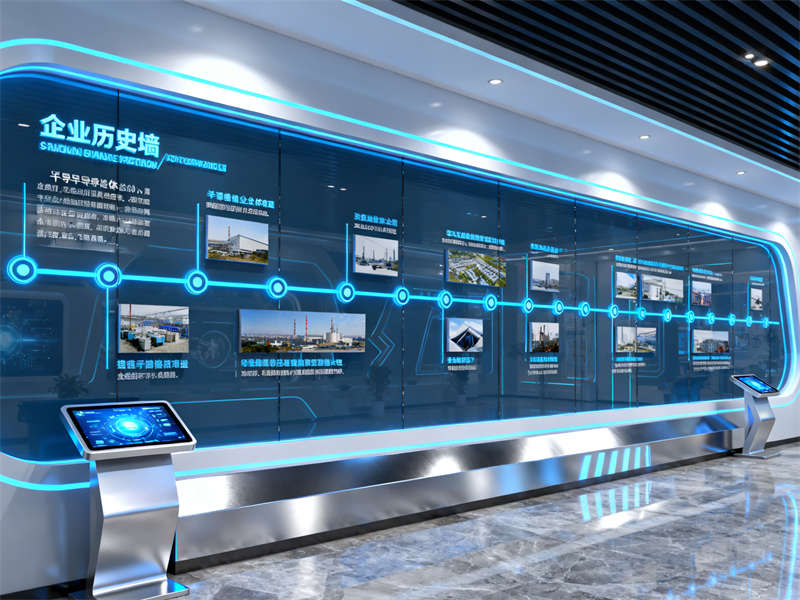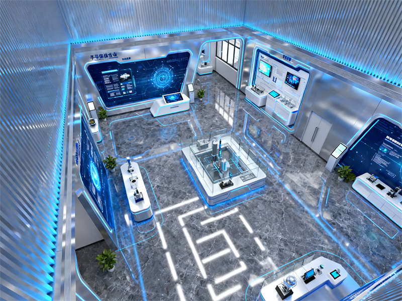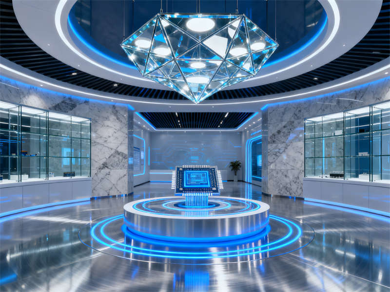 展廳入口處設置了沉浸式視覺裝置,通過光影效果模擬半導體芯片的微觀結構,讓參觀者剛進入就能直觀感受到行業特性。往里走,核心展示區采用開放式布局,搭配通透的玻璃展柜與懸浮式展臺,既方便參觀者近距離觀察展品,又能讓空間顯得開闊不壓抑。展示區旁設置了互動體驗區,裝修上融入了柔和的木質元素,平衡科技感帶來的冷峻,讓參觀者在互動過程中更顯舒適。?