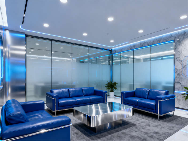 此外,展廳還規劃了技術講解區與洽談區,兩處區域的裝修在保持整體風格一致的前提下,通過軟裝搭配進行區分——技術講解區配備簡潔的多媒體設備與階梯式座椅,方便開展小型技術分享;洽談區則以舒適的沙發與矮桌為主,營造出輕松的溝通氛圍,整體設計既滿足了展示、交流等功能需求,又充分彰顯了半導體企業的專業形象與品牌氣質。